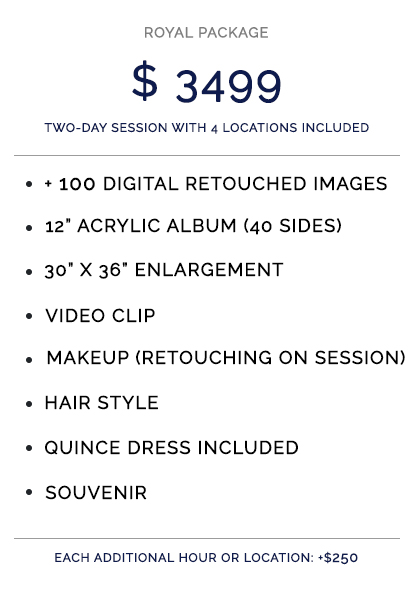 Our photo studio is meticulously crafted to provide our valued customers with an exceptional level of service, distinguishing us from other studios in Miami. Specializing in contemporary Quinceañera photography, our utmost satisfaction stems from our customers' happiness. Witnessing a mother's tear of joy upon seeing her daughter in a stunning Quinceañera gown, or the heartfelt sigh of a father perusing his daughter's Quinceañera album, fills us with profound gratitude. Moreover, the laughter and jubilation shared by the Quinceañera and her friends as they reminisce over the captured moments of the photoshoot are truly priceless.